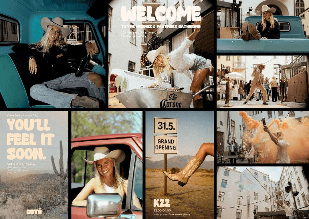 Cotòn brändi näkyy ja tuntuu jokaisessa elementissä – valokylteistä DJ-tasoon, ruokalistoista käsintehtyihin logomerkkauksiin. Loimme tunnelman, joka tekee vaikutuksen heti sisään astuessa.
